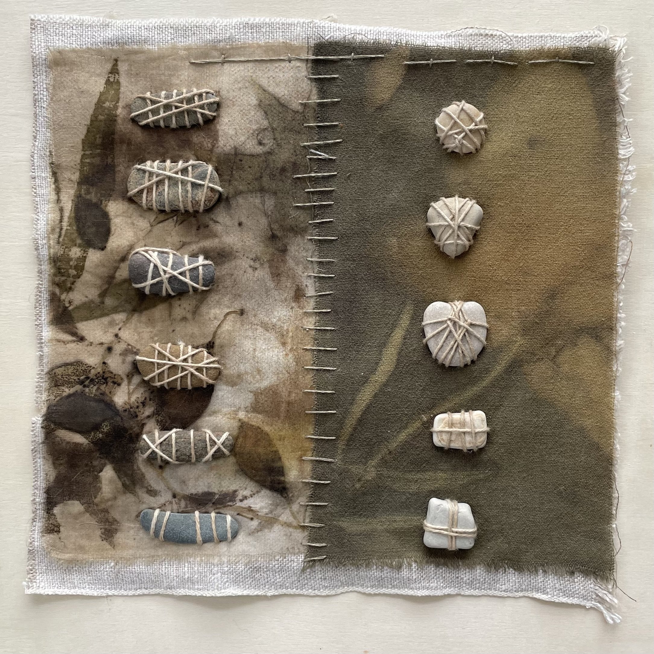 I use my ecoprints in collage work and often embellish them with embroidered and machine stitched details.